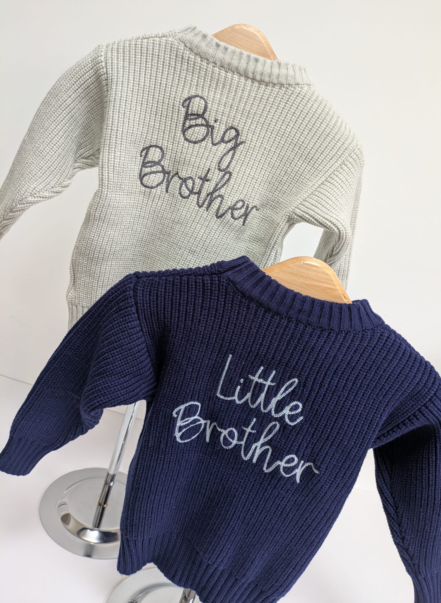 These jumpers will be machine embroidered with Big Brother/Sister, Little Brother/Sister
