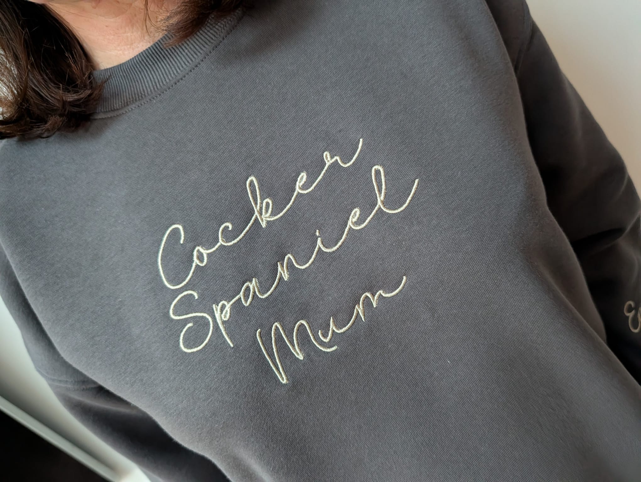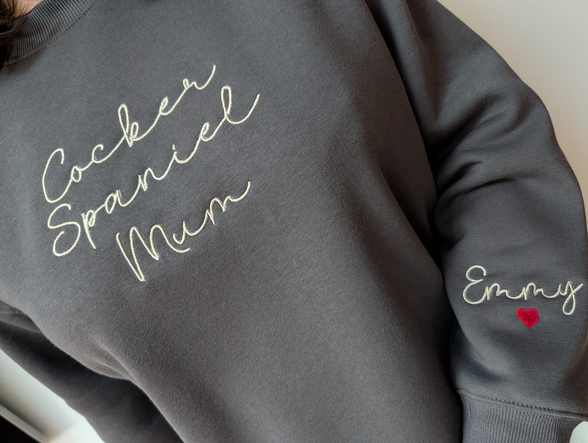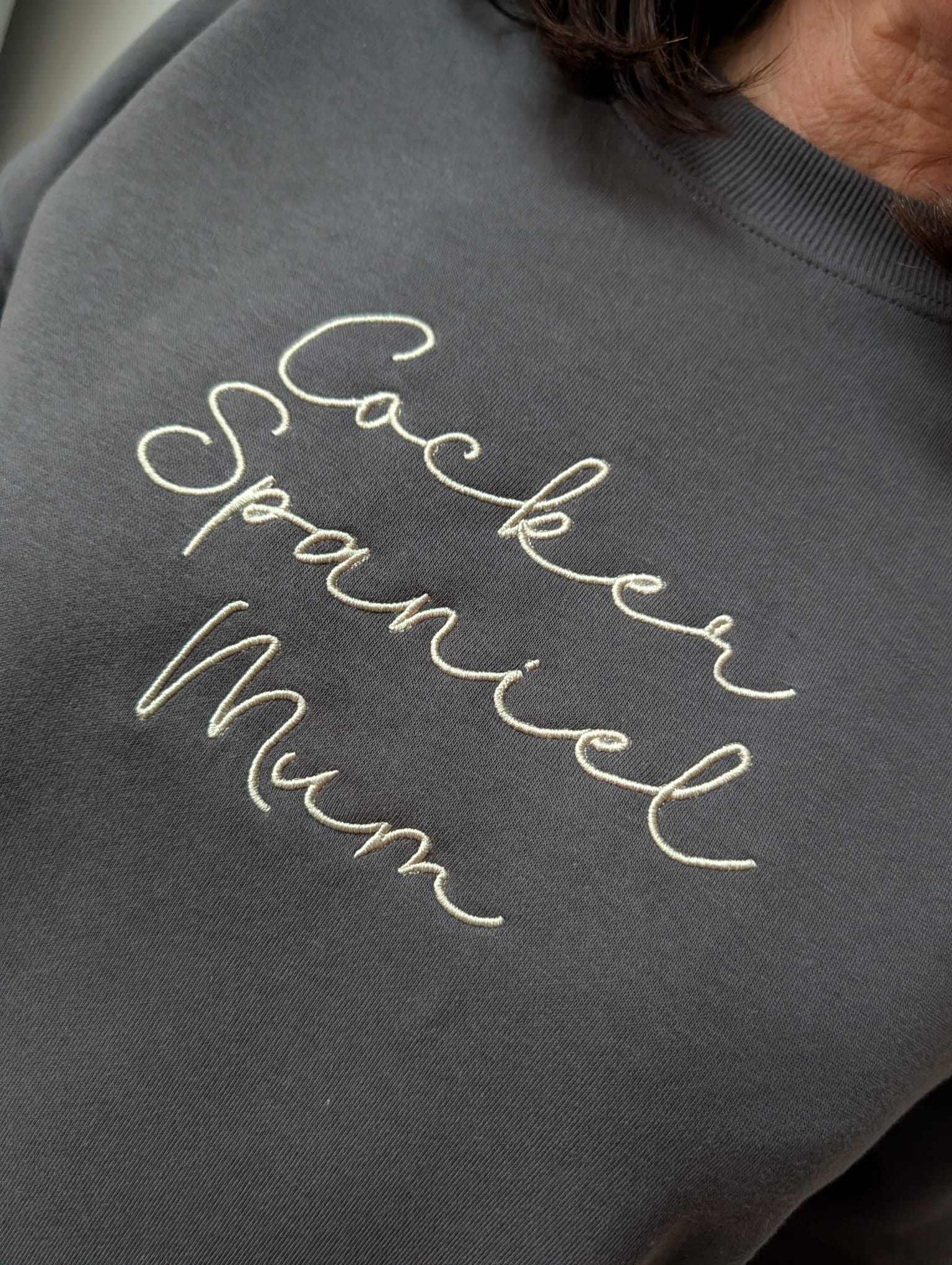 Embroidered Dog Mum Sweatshirt|Personalised Dog Breed Sweartshirt|Machine Embroidery|Spaniel|Labrador|Retriever|Dachshund|Cockapoo